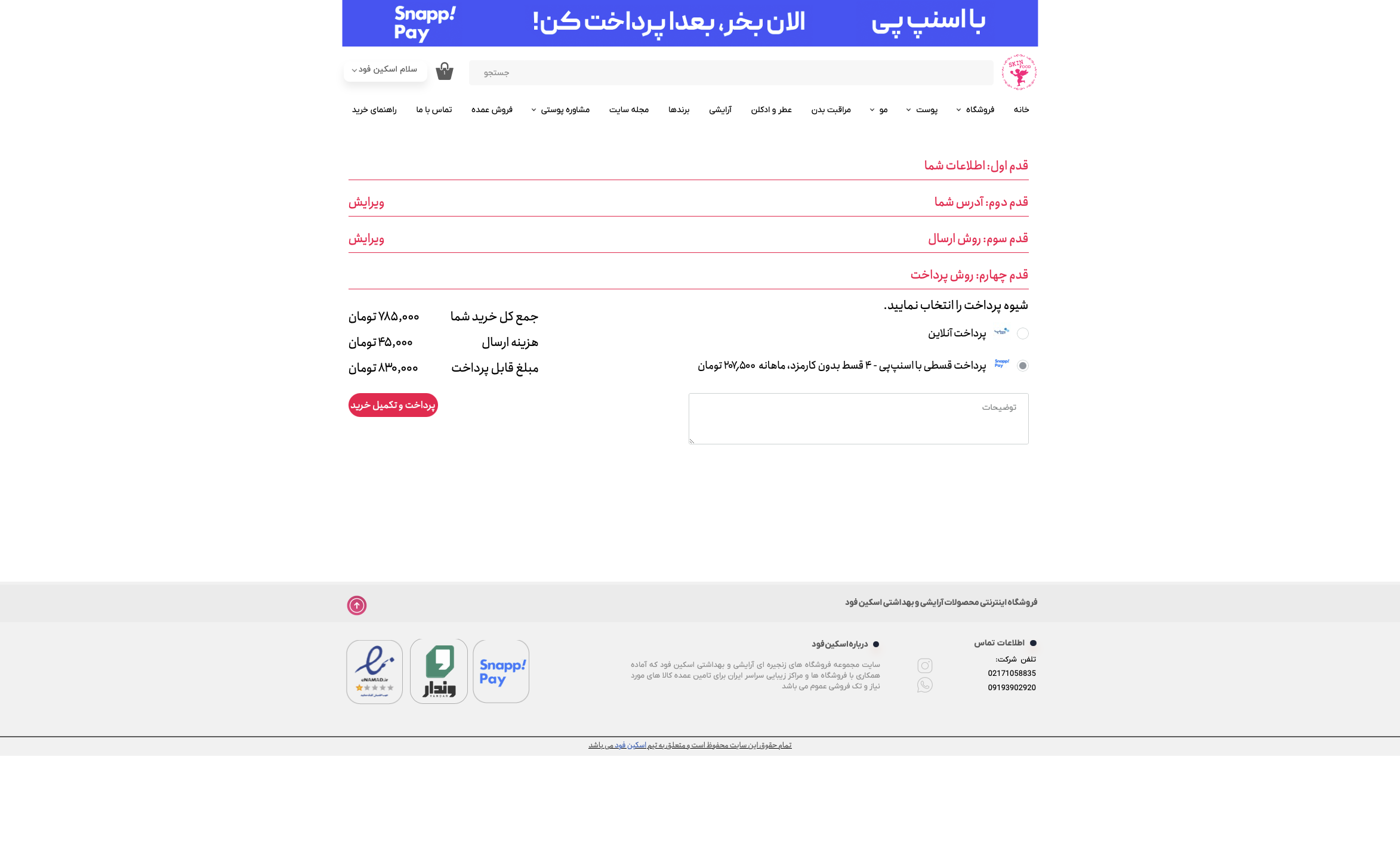 راهنمای کامل خرید اقساطی با اسنپ‌پی ازاسکین فود ؛ بدون چک و سود!